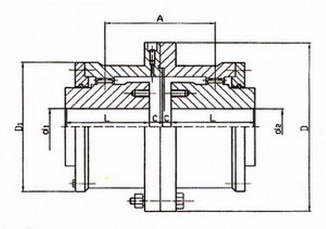 | 型號 | 公稱轉(zhuǎn)矩 | 軸孔直徑 | 軸孔長度 | D | D1 | A | C | 質(zhì)量Kg |